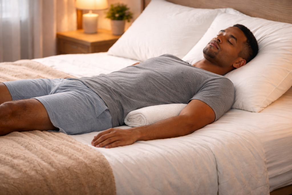 4. Back Sleeping with Towel Roll Under Lower Back