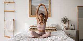 gentle morning stretch routine in a calm bedroom environment