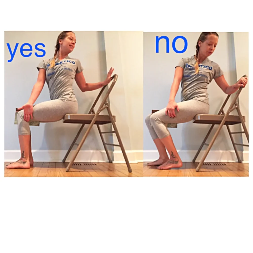 - Support hands on legs if needed