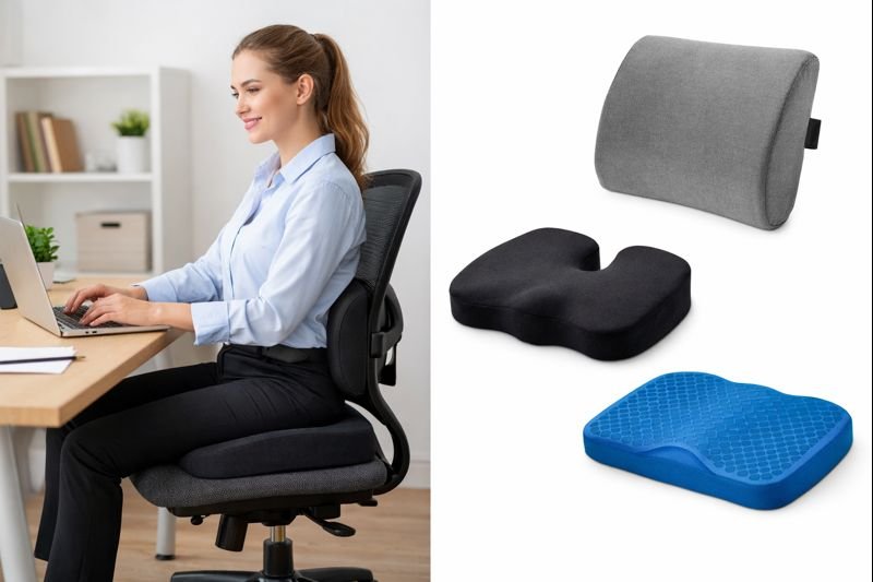 Some people choose to add a supportive seat cushion to their chair to help reduce pressure on the tailbone and hips. Popular options include memory foam coccyx cushions and gel-infused seat pads designed for office chairs, car seats, and home use.