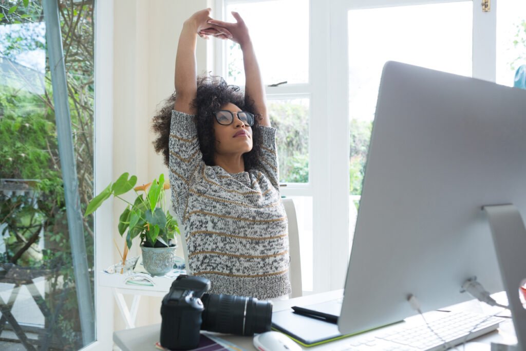 Even standing for a minute helps reset your posture.